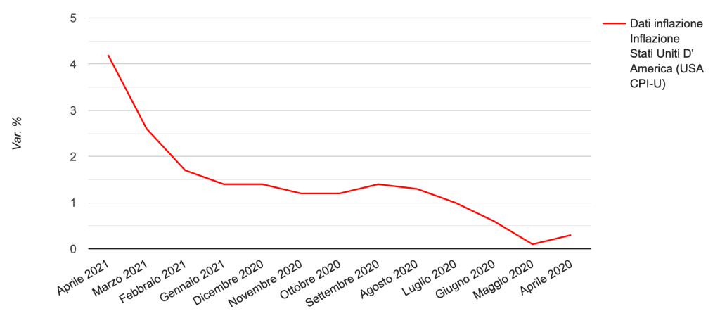 Vediamo da vicino l’inflazione (dati mensili) in USA (attenzione, il grafico si legge da dx a sx):