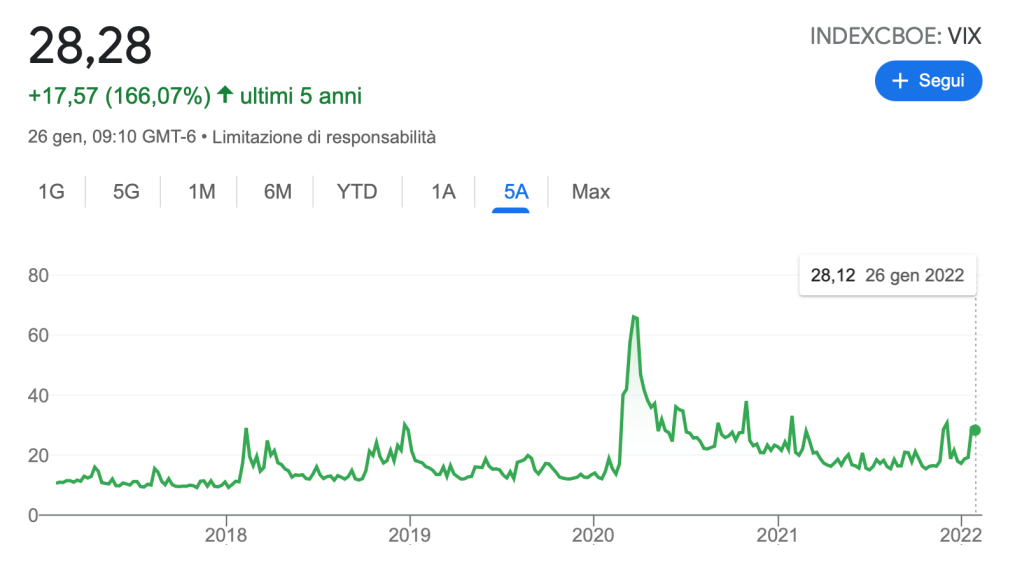 Il valore odierno, come potete vedere dal grafico dell’indice degli ultimi 5 anni, è su livelli già più volte raggiunti e superati.