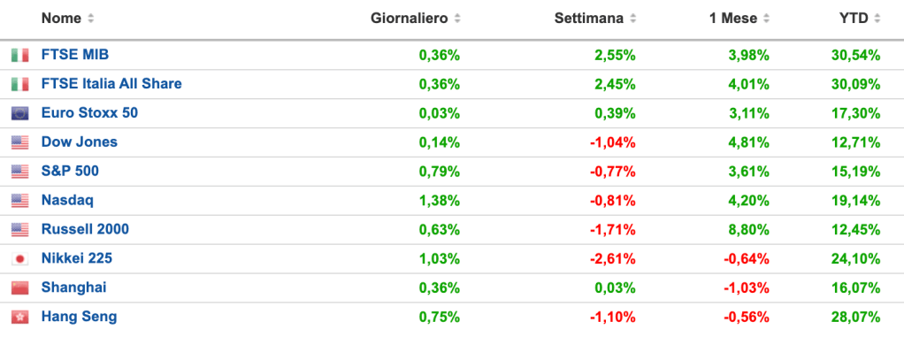 Come si può vedere tutti i principali mercati azionari hanno evidenziato performance ottime in questo 2025.